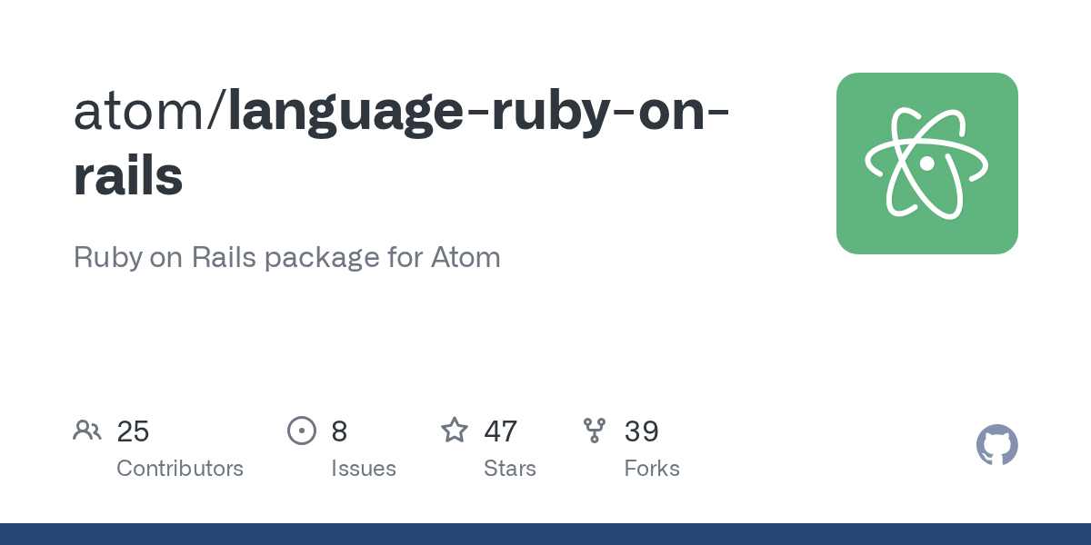 Ruby on rails language support in atom. Adds syntax highlighting and snippets to rails files in atom. Atom is slow without any packages at all. On a recent development project we chose atom as editor (instead of our regular sublime).. By adding atom packages to the main program, atom becomes much more efficient and helps you do more with less effort.
